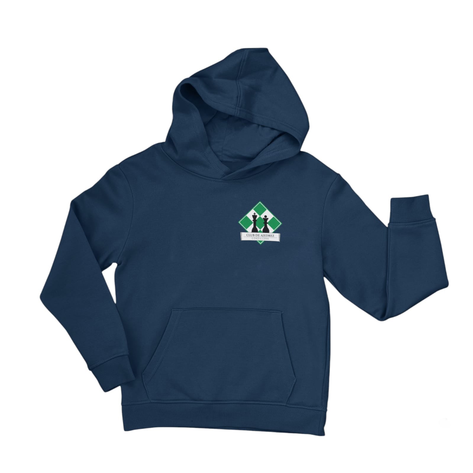 Luce con orgullo los colores del Club de Ajedrez Cordillera con este cómodo y abrigador polerón con capucha. Su diseño incluye el logo oficial del club, estampado en el pecho.